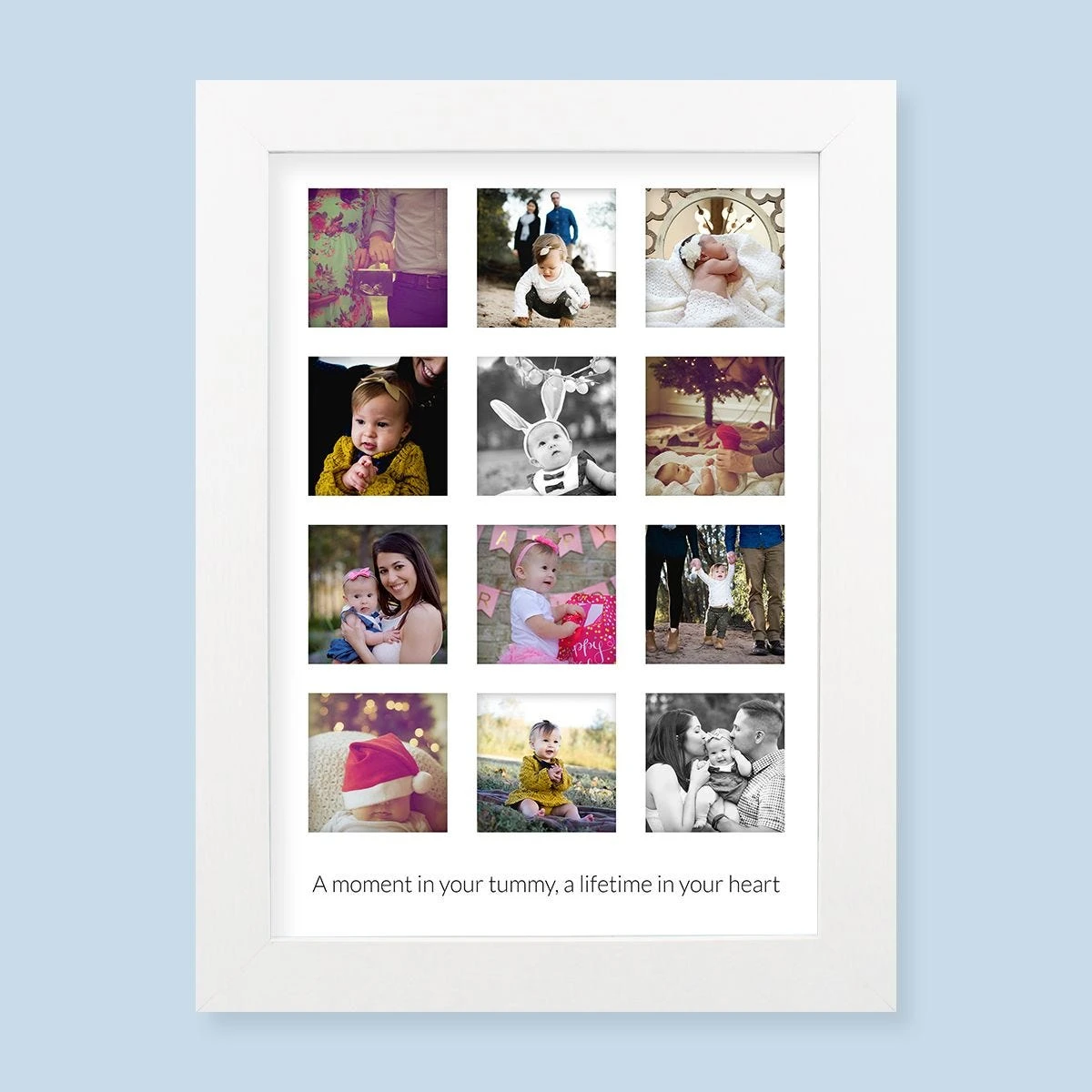 Your happiest moments and memories, turned into a stunning work of art. Sounds good, right? Even better, this cute collage arrives with a beautiful white Harriet frame, ready to go on display as soon as you’ve placed your print inside. Easy peasy!