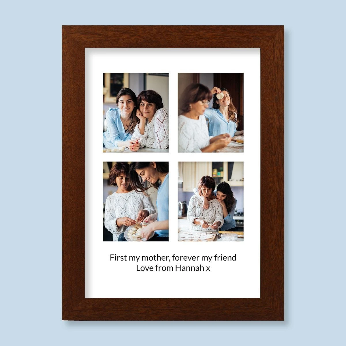 Your happiest moments and memories, turned into a stunning work of art. Sounds good, right? Even better, this classic window frame collage arrives with a beautiful rustic wood Harriet frame, ready to go on display as soon as you’ve placed your print inside. Easy peasy!Â