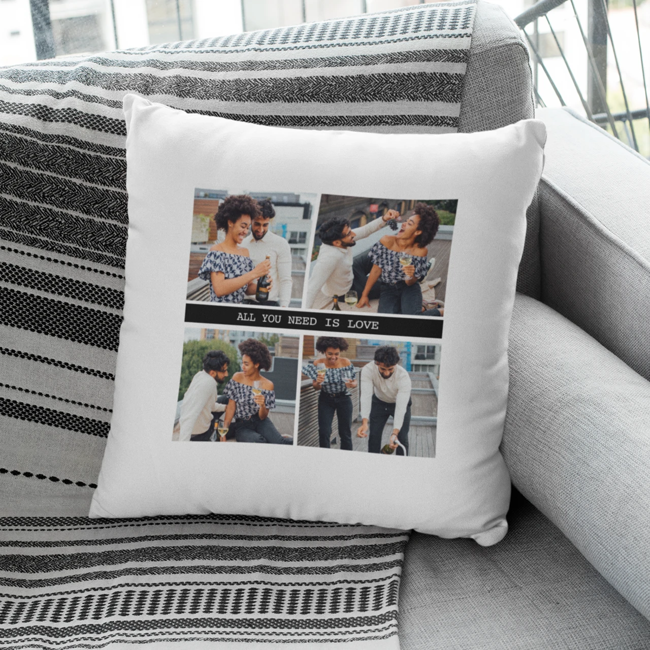 Scatter your happiest memories all around you, then give them a good cuddle whenever and wherever you like. The 4 Photos and Text Personalised Cushion lets you squeeze, snuggle and save your cherished memories forever, while also adding a unique squishy style to your home.