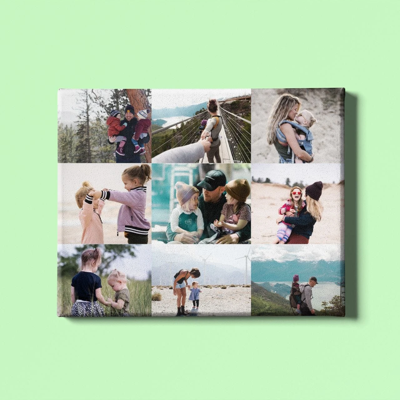 Get creative and enjoy more of your treasured memories. Our 9-image collage canvas photo print is the perfect way to showcase your happiest moments, supersize your snaps and turn them into personalised wall art that really brightens up your home. So long, boring walls!