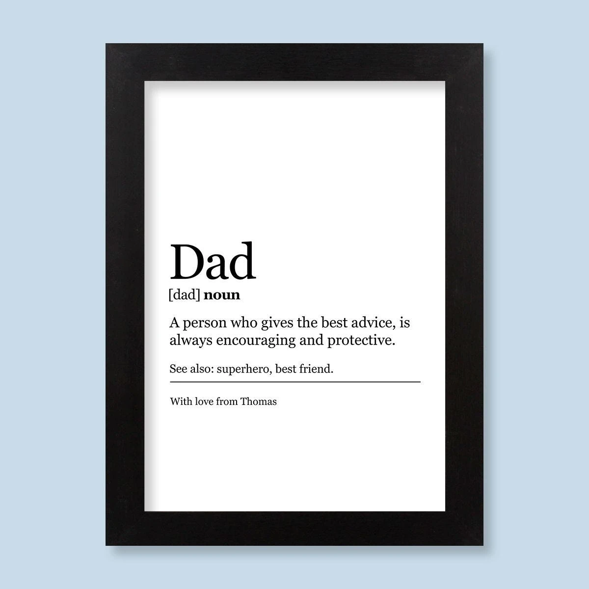 Dad might be hard to buy for, but a personalised framed print is a gift that makes sure you’ll always be his favourite! This fun personalised Dad Definition Print comes in a stylish black frame, ready to go on display as soon as it’s out of the box. From private jokes to heartfelt messages, this is a memorable gift that tells Dad exactly what you think of him!