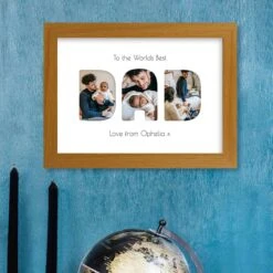 Dad’s happiest moments and memories, turned into a stunning work of art this Father’s Day. Sounds good, right? Even better, this beautiful Dad print arrives with your favourite photos already sitting nice and snug in a beautiful light wood Harriet frame, ready to go on display as soon as you’ve opened the packaging. No messing about.