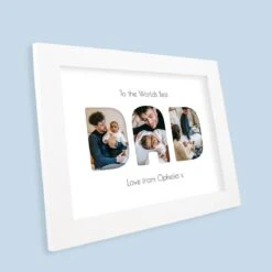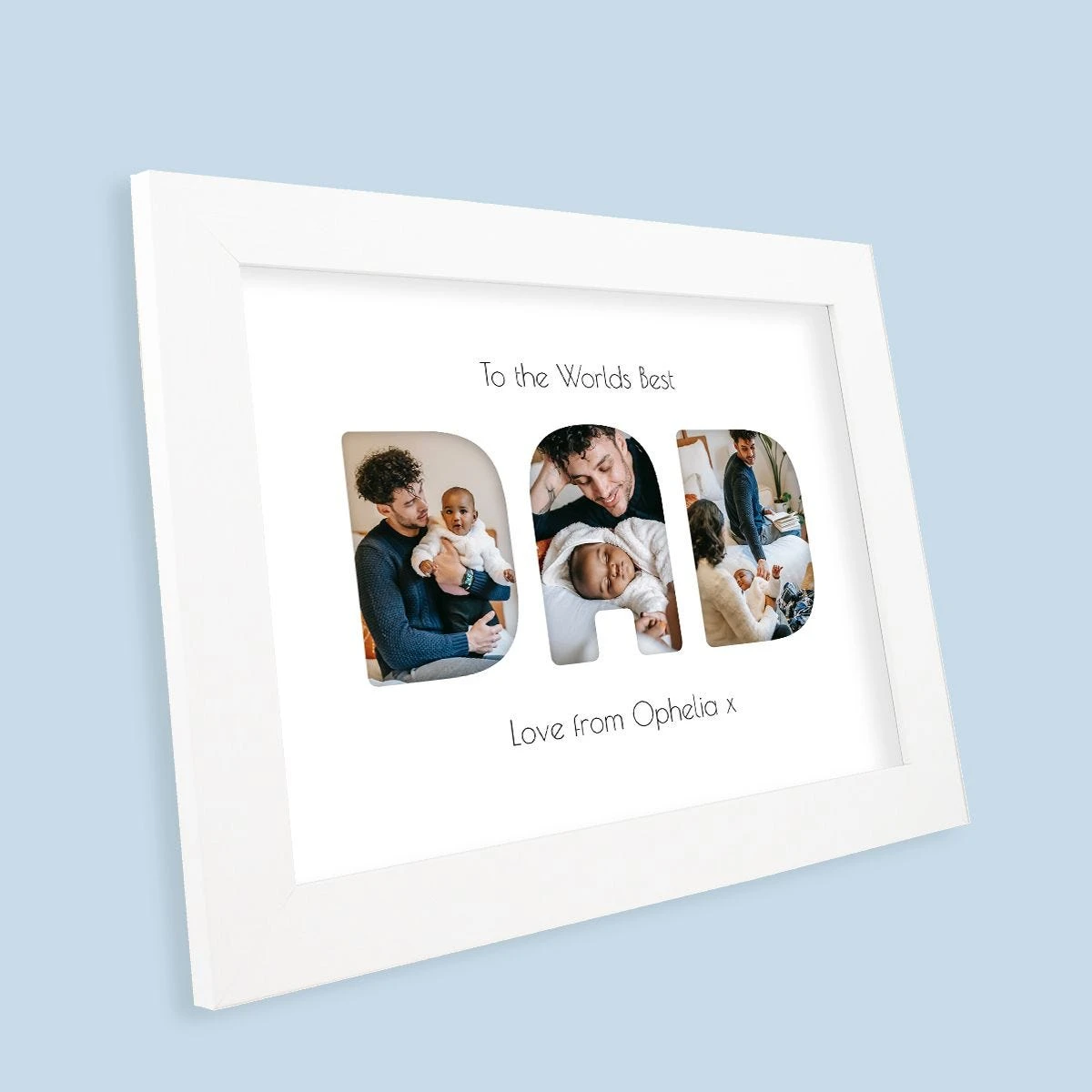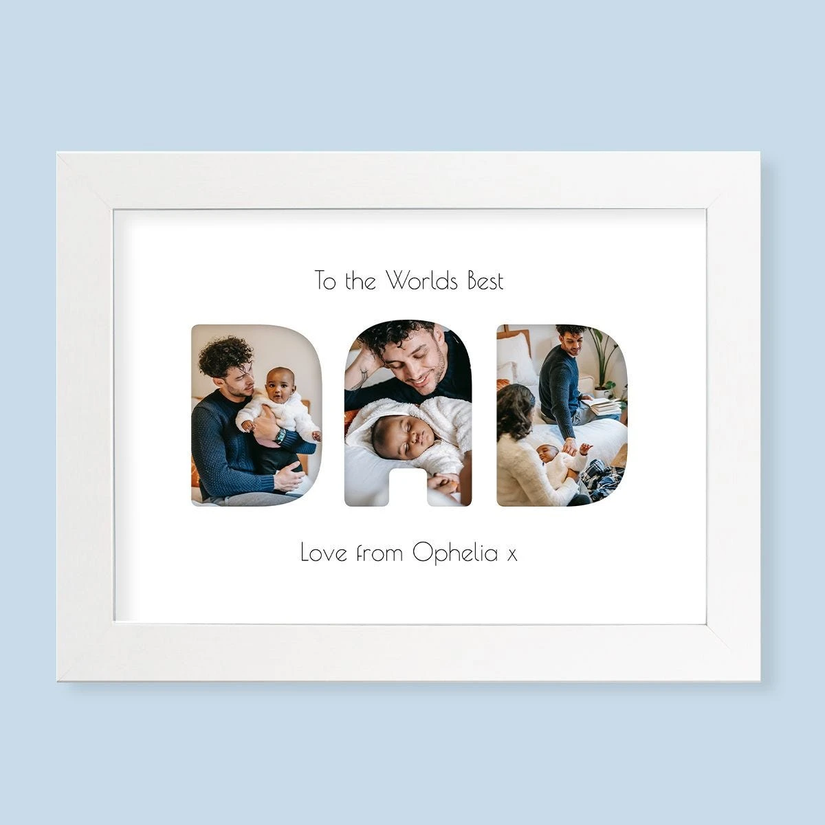 Dad’s happiest moments and memories, turned into a stunning work of art this Father’s Day. Sounds good, right? Even better, this beautiful Dad print arrives with your favourite photos already sitting nice and snug in a beautiful white Harriet frame, ready to go on display as soon as you’ve opened the packaging. No messing about.