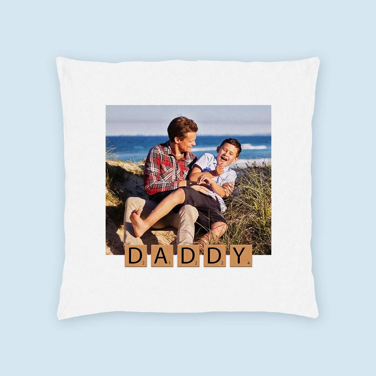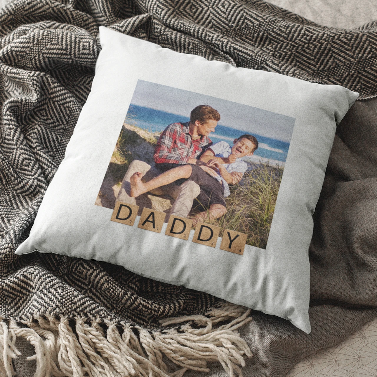 Scatter your happiest memories all around you, then give them a good cuddle whenever and wherever you like. The Daddy Letter Tile Photo Cushion lets Dad squeeze, snuggle and save his cherished memories forever, while also adding a unique squishy style to the home.
