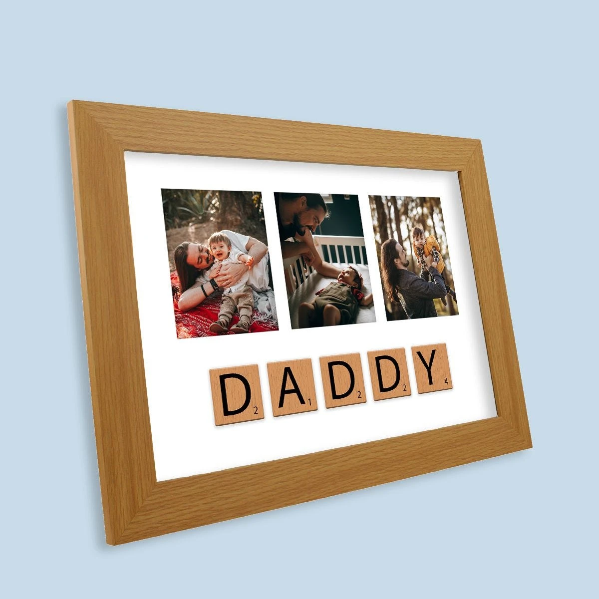 Dad’s happiest moments and memories, turned into a stunning work of art this Father’s Day. Sounds good, right? Even better, this beautiful Dad print arrives with your favourite photos already sitting nice and snug in a beautiful light wood Harriet frame, ready to go on display as soon as you’ve opened the packaging. No messing about.
