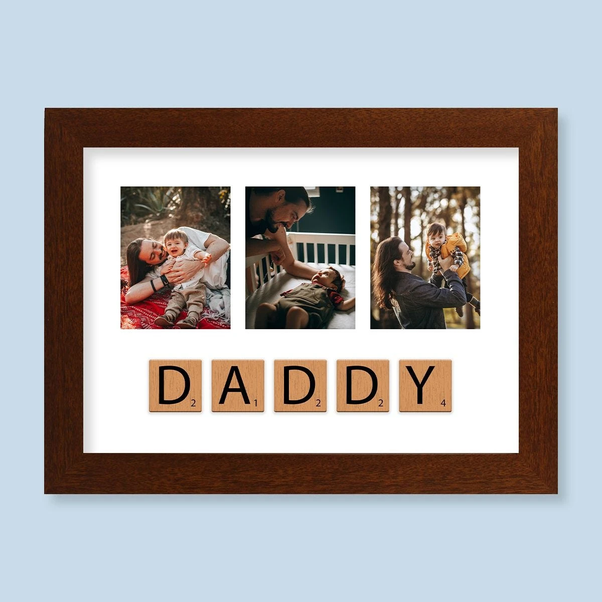 Dad’s happiest moments and memories, turned into a stunning work of art this Father’s Day. Sounds good, right? Even better, this beautiful Dad print arrives with your favourite photos already sitting nice and snug in a beautiful rustic wood Harriet frame, ready to go on display as soon as you’ve opened the packaging. No messing about.