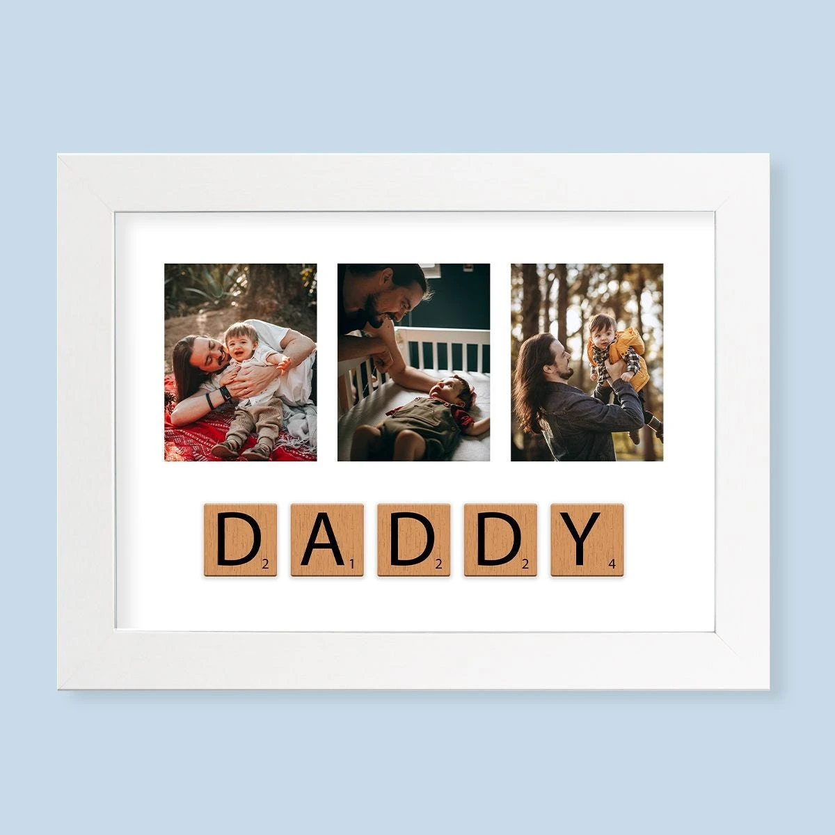 Dad’s happiest moments and memories, turned into a stunning work of art this Father’s Day. Sounds good, right? Even better, this beautiful Dad print arrives with your favourite photos already sitting nice and snug in a beautiful white Harriet frame, ready to go on display as soon as you’ve opened the packaging. No messing about.
