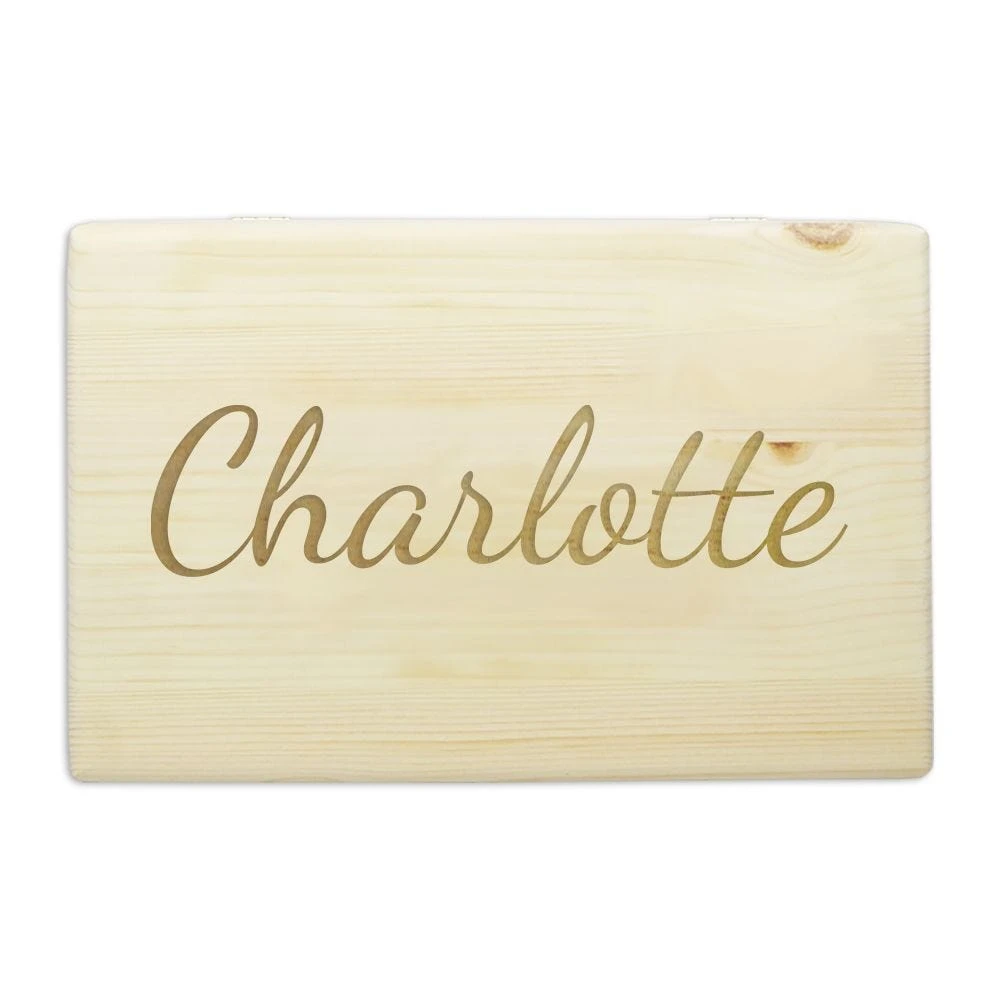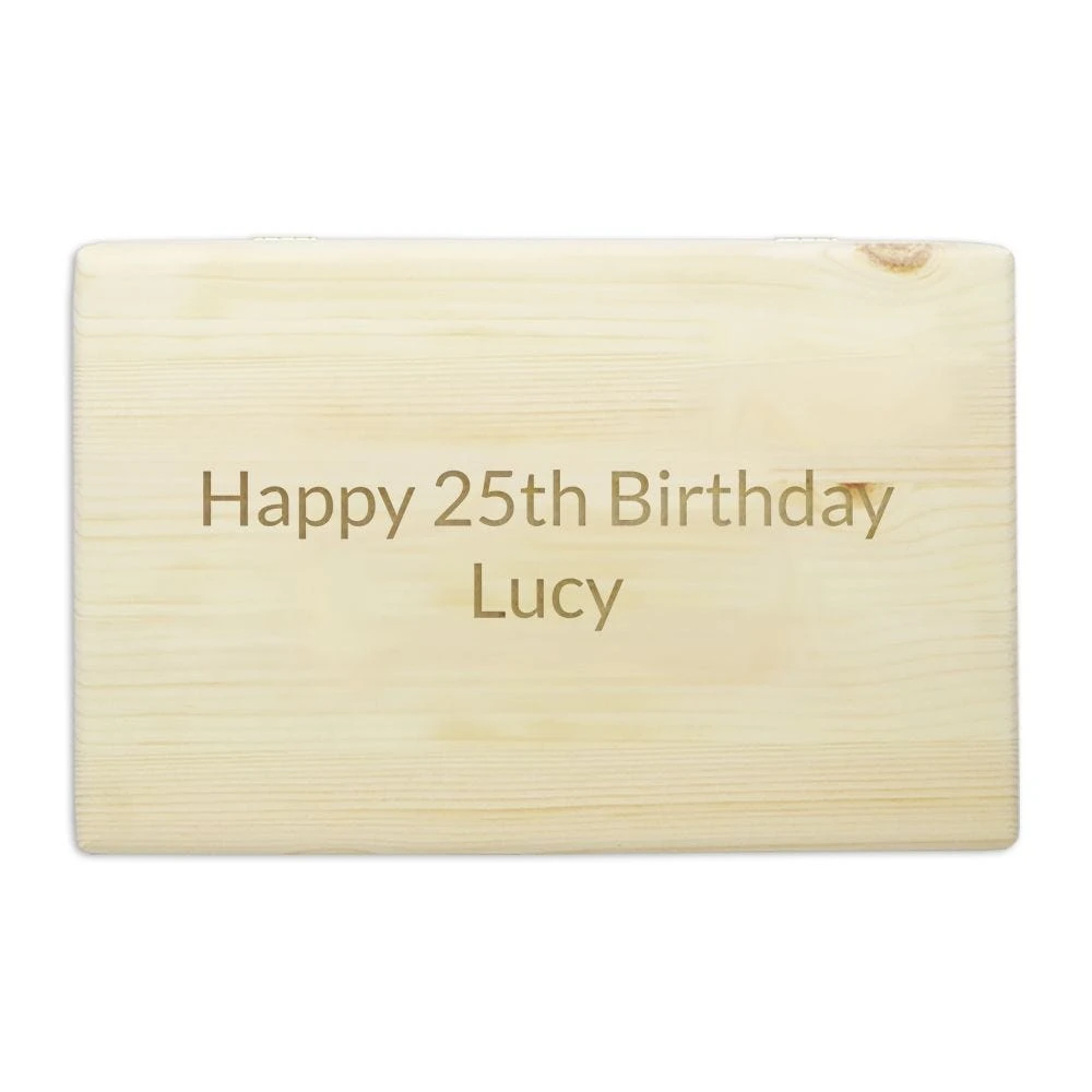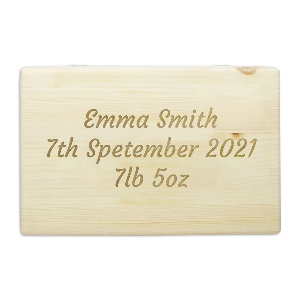 The handy lift-up lid is engraved with any name or message, so you can craft a thoughtful gift for new parents, a special treat for your bestie, or simply a wooden memory box to keep your own little treasures safe and sound.
