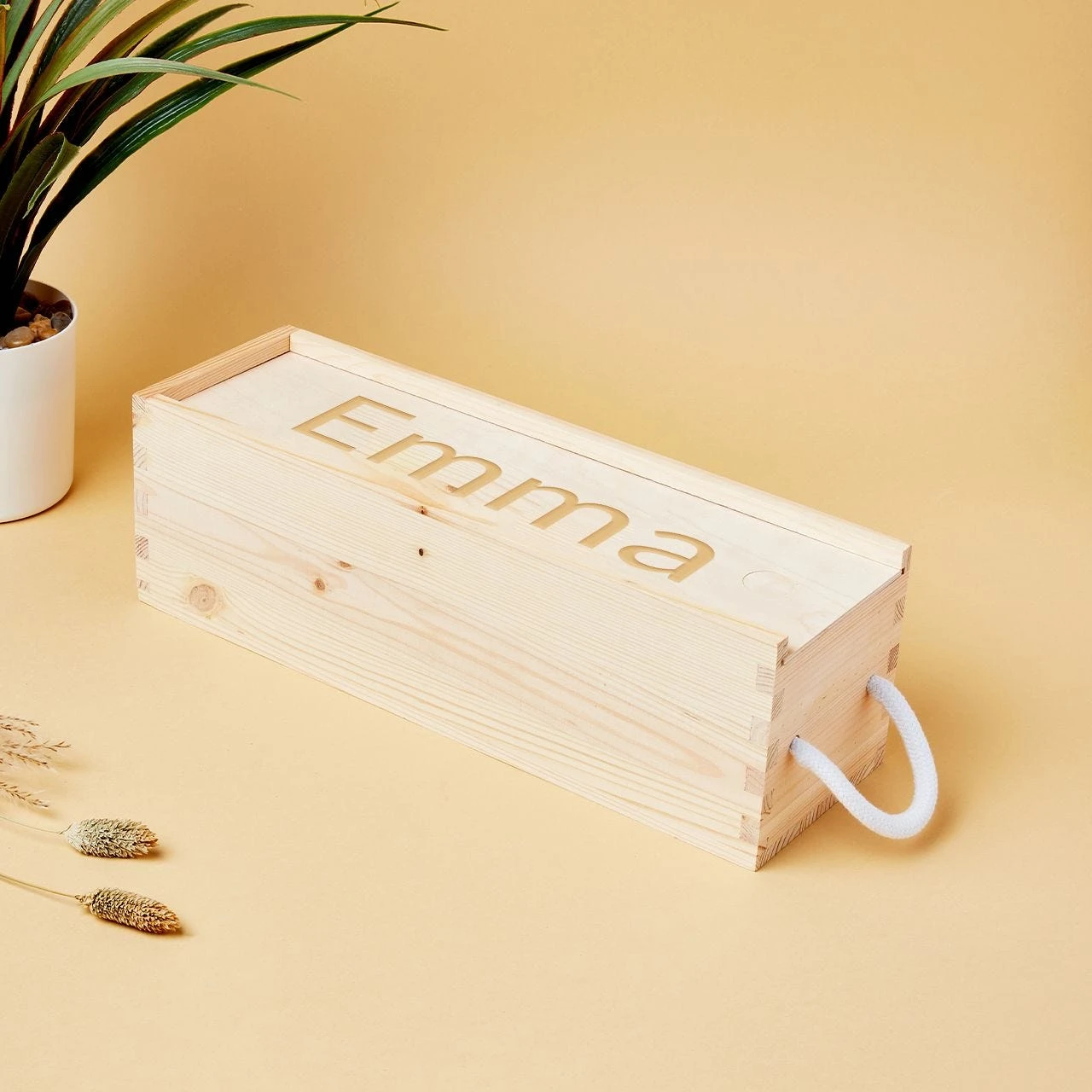 This engraved wine box (sadly) doesn’t include any wine, but it’s the perfect size for most standard wine bottles. To start making your own unique, thoughtful and long-lasting gift, simply enter your chosen text online and we’ll lovingly engrave your one-of-a-kind wine box!