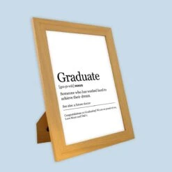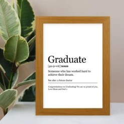 After all, they don’t get to graduate every day, so you’ll want to congratulate them with a gift that means a little bit more. The Graduate Definition Harriet Light Wood Print and Frame is a fun and thoughtful graduation gift that’s easy to personalise with your own dictionary-style definition and special message.