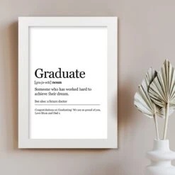 After all, they don’t get to graduate every day, so you’ll want to congratulate them with a gift that means a little bit more. The Graduate Definition Harriet White Print and Frame is a fun and thoughtful graduation gift that’s easy to personalise with your own dictionary-style definition and special message.