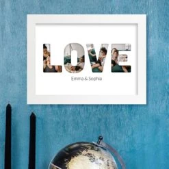 This framed “LOVE” photo collage is the perfect gift for birthdays, anniversaries, Valentine’s Day, or any other day you want to show some love. From your nervy first date to more recent snaps together, your romantic moments will be printed in stunning quality within the “LOVE” lettering – so they’ll always remember just how much they mean to you!