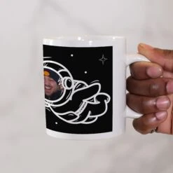 Whether he’s wearing a huge smile or pulling a funny face, simply upload your chosen Dad pic to send him into outer space whenever he brews up. Brew o’clock is going interstellar!Â