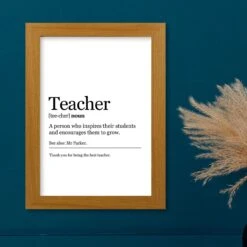 The fun Teacher Definition Print features a fun dictionary design, showing your appreciation by writing your own definition of them! Just add their name and a special message underneath, and this thoughtful gift will have them beaming at the end of the school term.