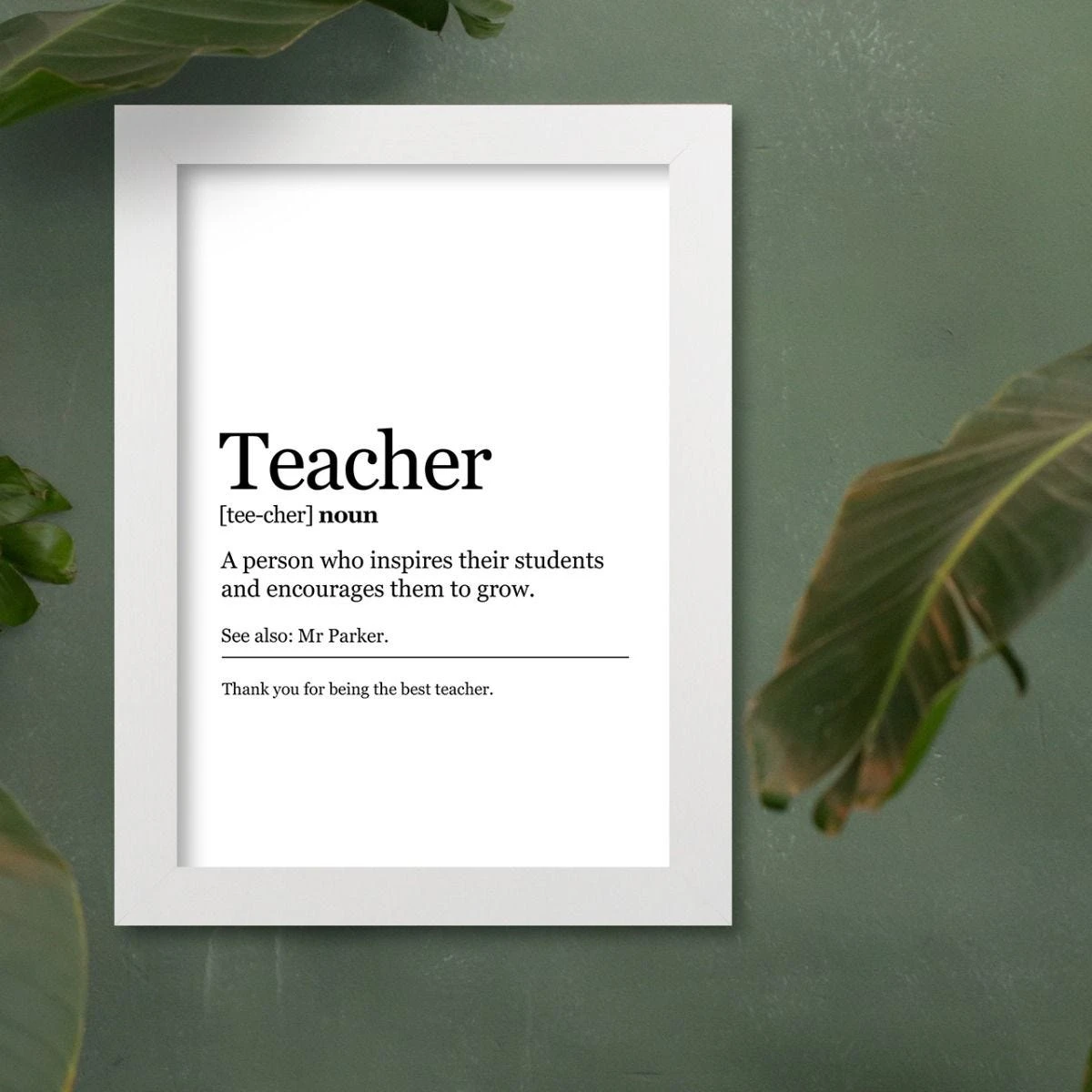 The fun Teacher Definition Print features a fun dictionary design, showing your appreciation by writing your own definition of them! Just add their name and a special message underneath, and this thoughtful gift will have them beaming at the end of the school term.