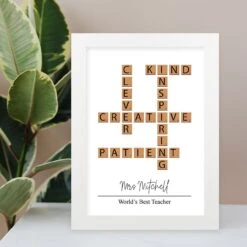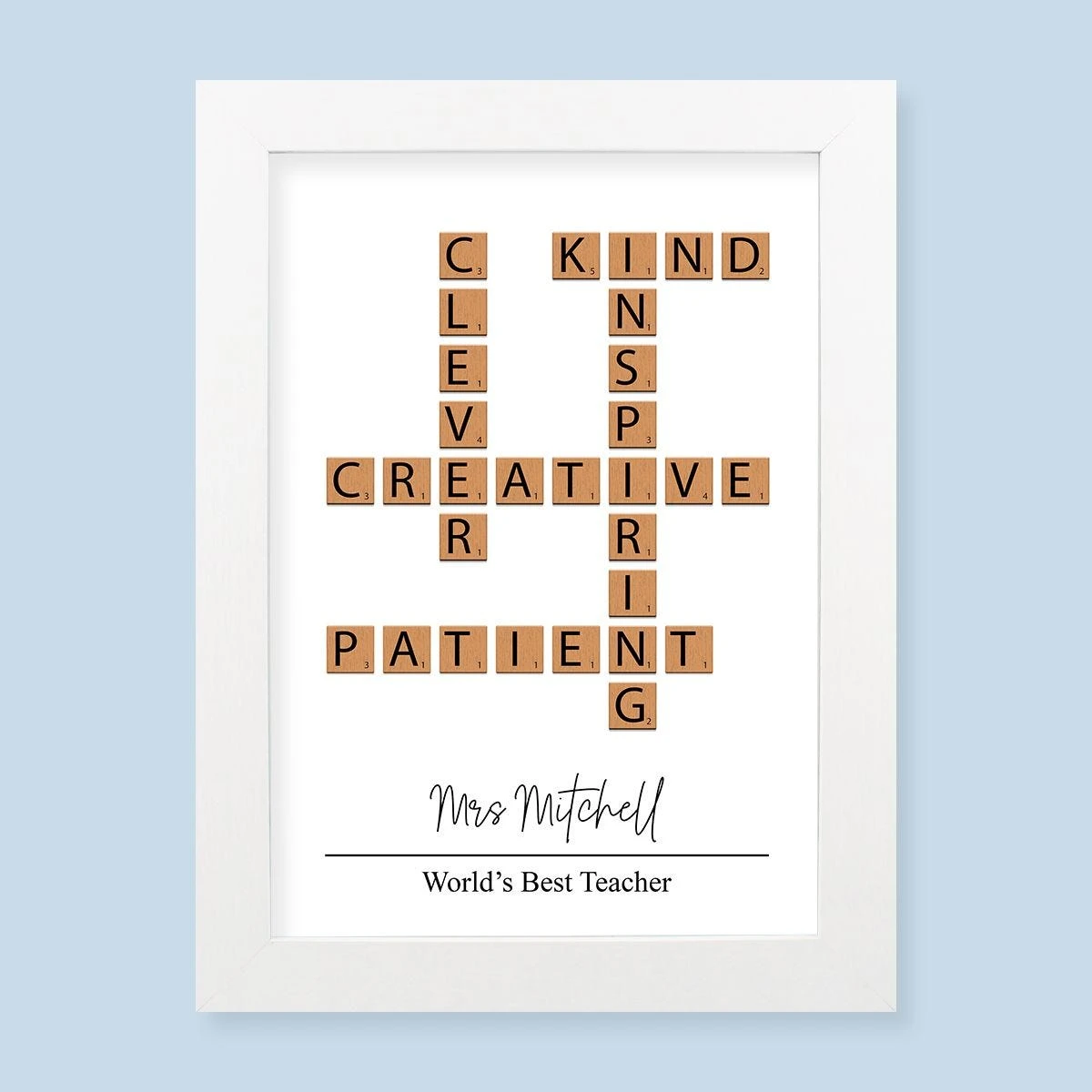The fun Teacher Letter Tile Print features a fun word game design, showing your appreciation by spelling out exactly what you think of them! Just add their name and a special message underneath, and this thoughtful gift will have them beaming at the end of the school term.
