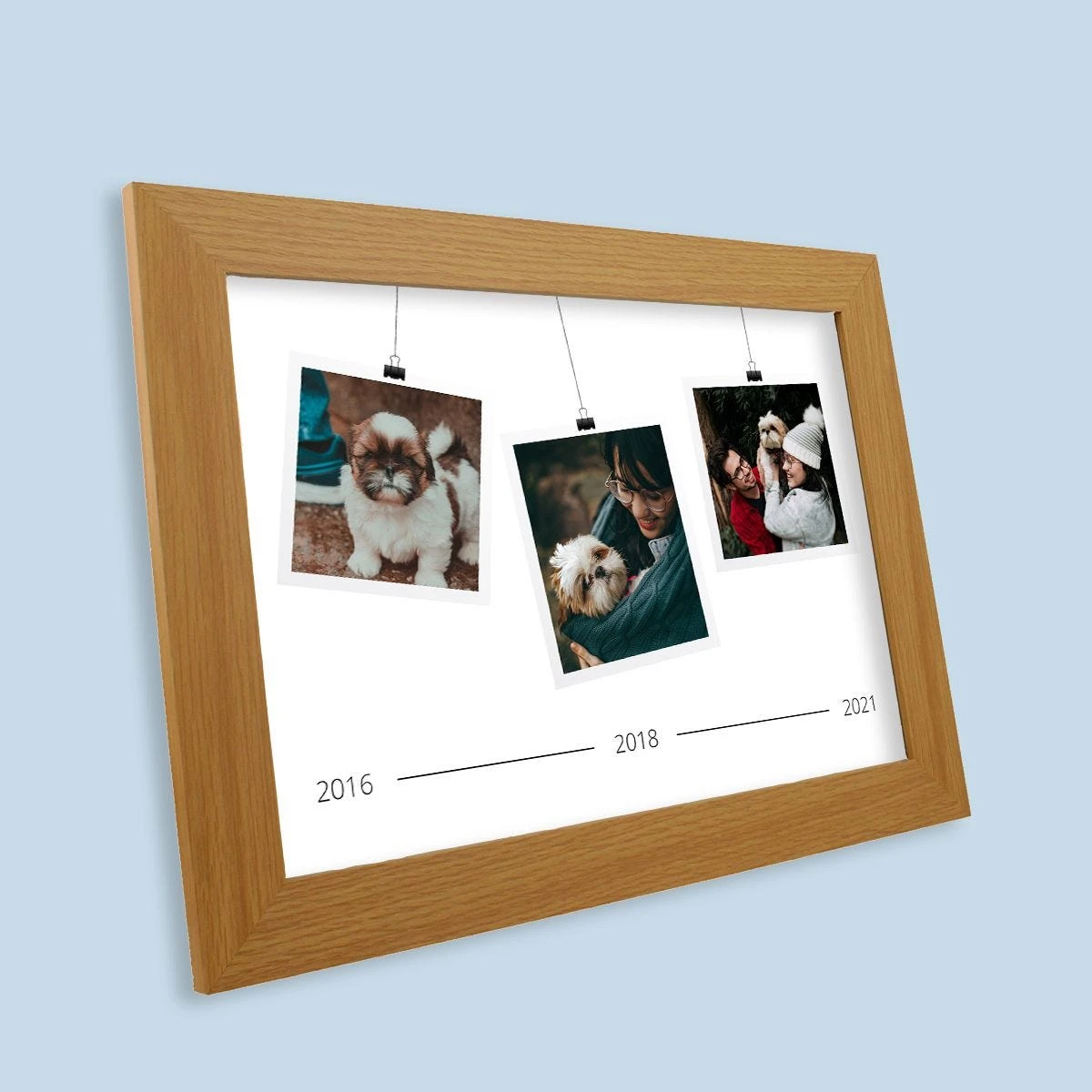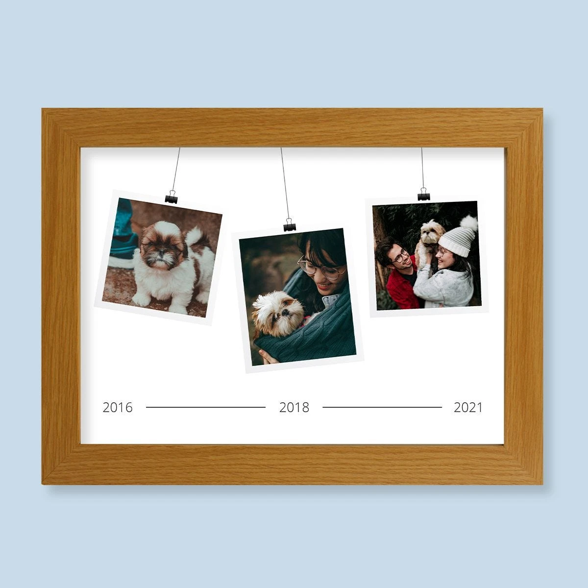 Jump back in time and showcase your fave photos from years gone by! This timeline-themed photo print arrives with a beautiful light wood Harriet frame, ready to go on display as soon as you’ve placed your print inside. Easy peasy!