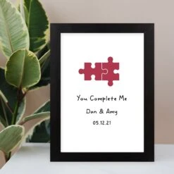 Aww, you just don’t feel the same without them! This “You Complete Me” puzzle print comes display-ready with a beautiful black Harriet frame, so it’s the perfect gift for birthdays, anniversaries and Valentine’s Day. Instead of just muttering those 3 little words, personalise this print with names and text to show how much your other half means!